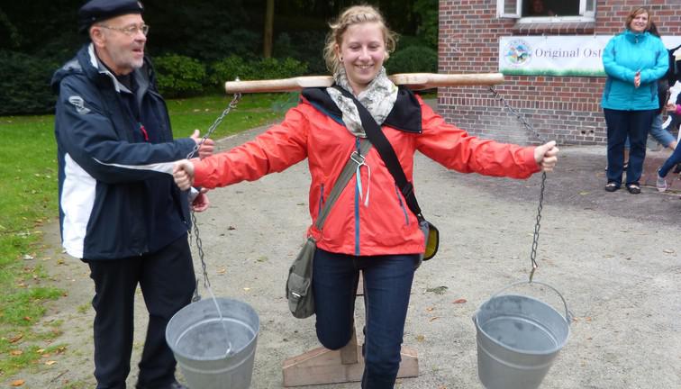 Bei Disziplinen wie Weitboßeln, Padstockspringen, Kuhmelken, Teezeremonie u.v.m. lernen Sie mit Augenzwinkern die Sitten und Gebräuche Ostfrieslands kennen und am Ende winkt das heiß begehrte Ostfriesen-Abitur!