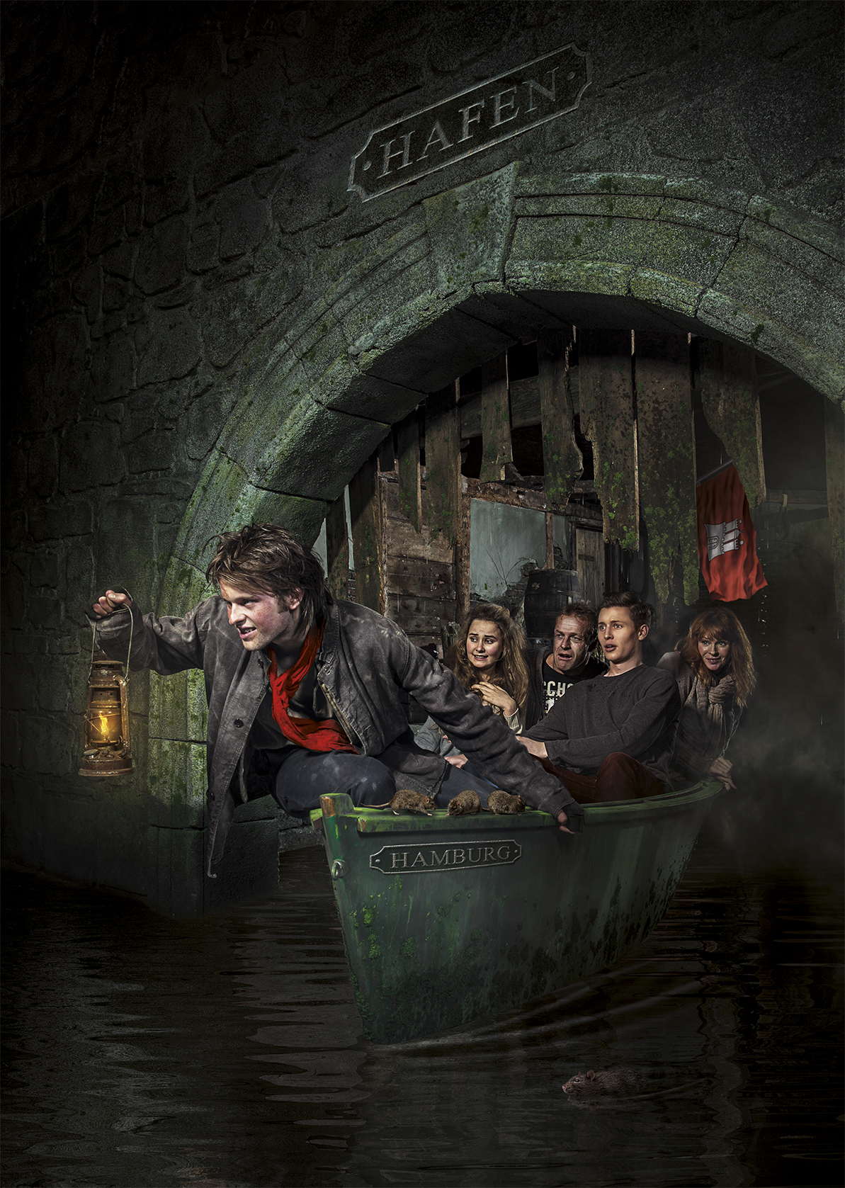 Zum Schluß besuchen Sie das Haus „Dungeon“. Eine multimediale Zeitreise durch die Geschichte Hamburgs. Folgen Sie den Spuren Störtebekers, erleben Sie das große Feuer von Hamburg und blicken Sie auf die dunkle Seite der Historie der Hansestadt. 15 bis 20 fest engagierte Schauspieler, Hightech-Installationen, aufwendige audiovisuelle Systeme und modernste Licht-, Feuer- und Spezialeffekte ermöglichen eine authentische Zeitreise.