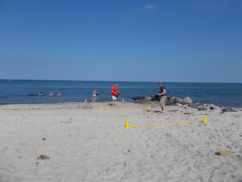 Einige Stationen sind z.B. Wasser tragen, Frisbee werfen, Blinde Nixe, Dreibeinlauf und Strandball.