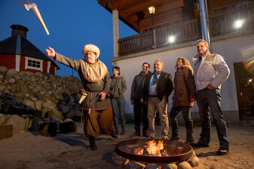 Ab 16.30 Uhr können Sie sich als Wikinger beweisen, denn dann beginnen die Spiele. Sie spielen zusammen mit den alten Wikingern aus Schleswig, kämpfen in Teams bei z.B Axtweitwurf und Bogenschießen.